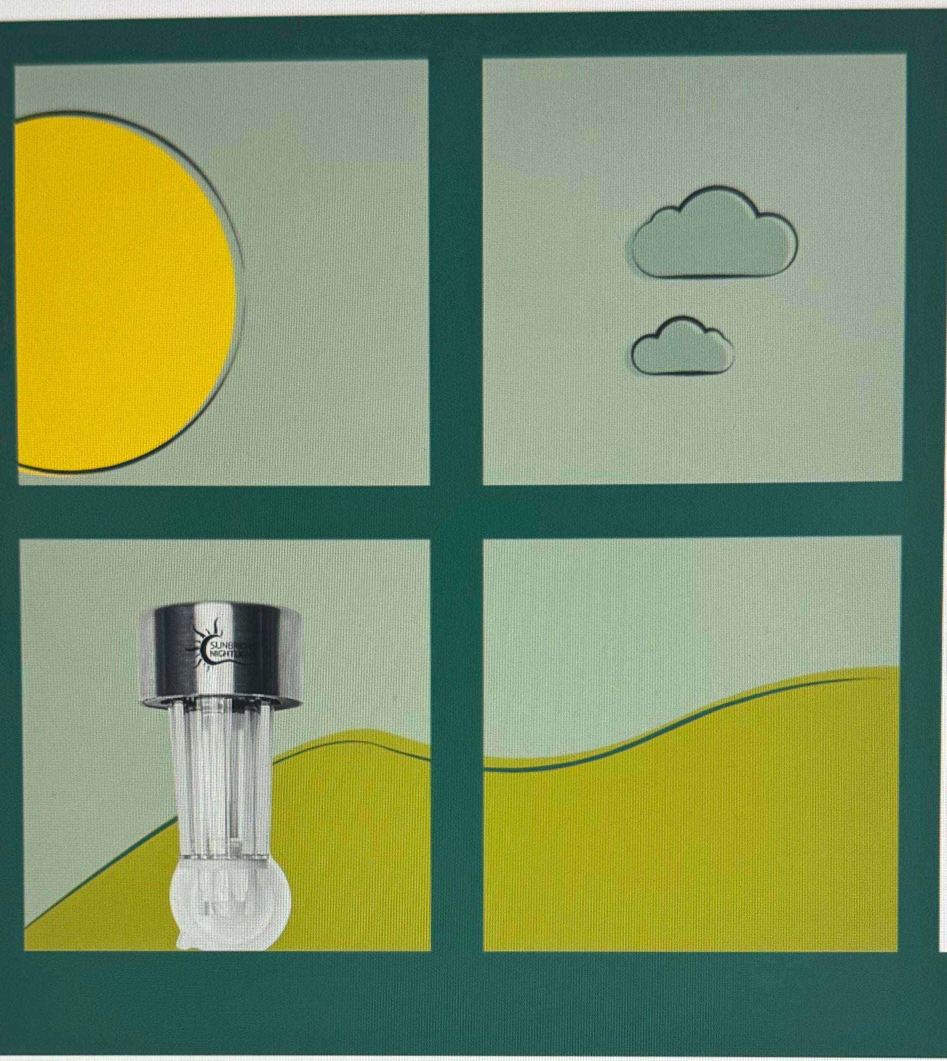 NIGHTLIGHT ☞ At night the re-charged battery stores electricity to power the light-emitting diode (LED). ☀︎ Automatically comes ON when the sun goes down and OFF when the sun rises.